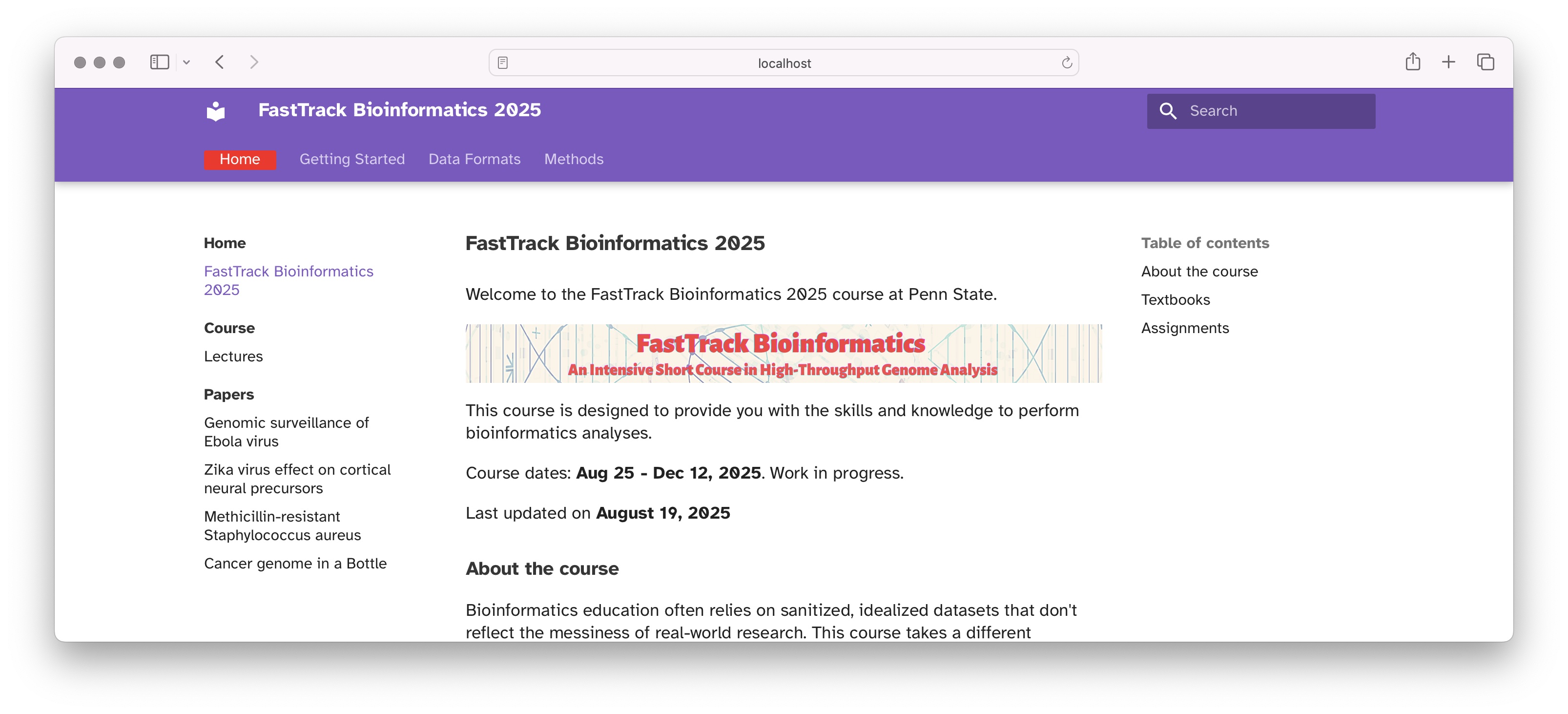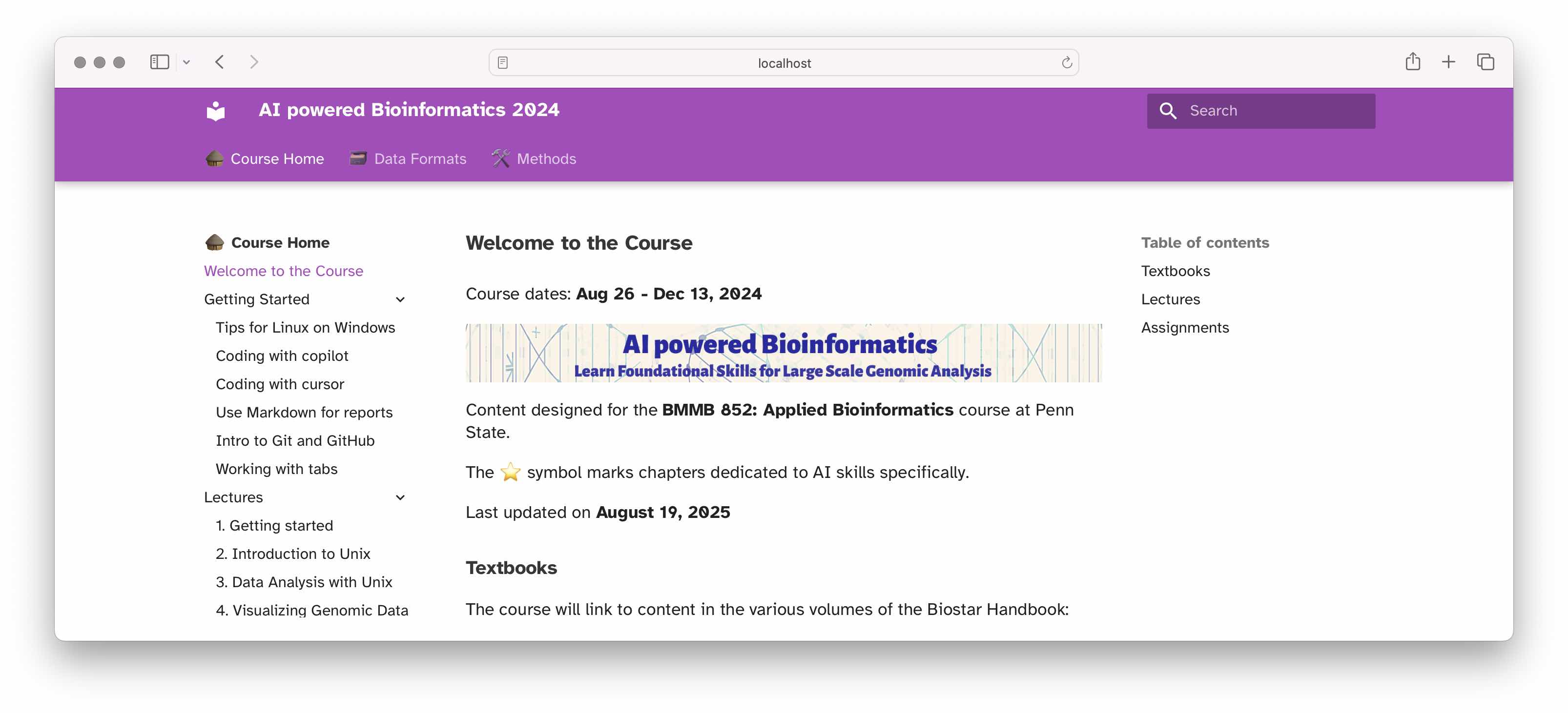 We’re redesigning our course for Fall 2025. The course follows the BMMB 852: Applied Bioinformatics graduate course at Penn State.